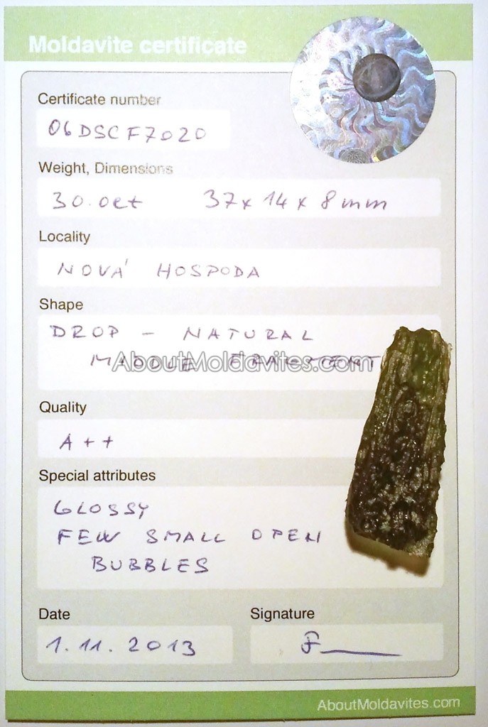 Special attributes: Glossy, few small opn bubble