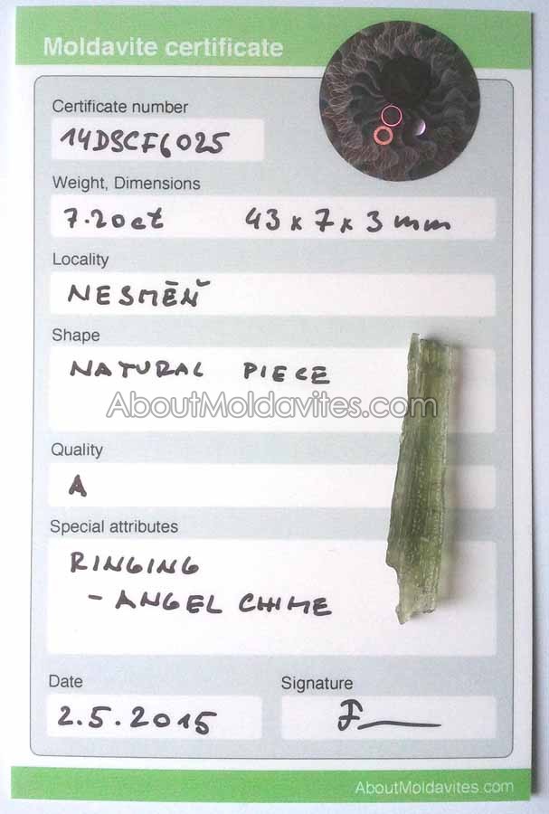 Special attributes: Color: Light green, Angel chime moldavite