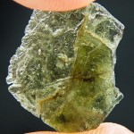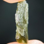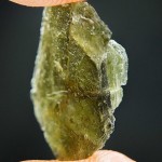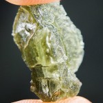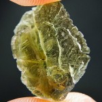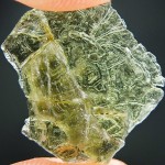 Take a look at a rare moldavite with rare sculpture (texture of moldavite surface).Sculpture on this moldavite looks like human skin. The moldavite comes from deposit Nesmen. The moldavite is layered – you can see the layers on sides.