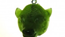 Certificate number: 09DSCF1364 Weight: 14.10ct Dimensions: 20 x 17 x 9mm Locality: South Bohemia Shape: Carved moldavite – Leo Quality: A Special attributes: Handmade Date: 4.7.2014